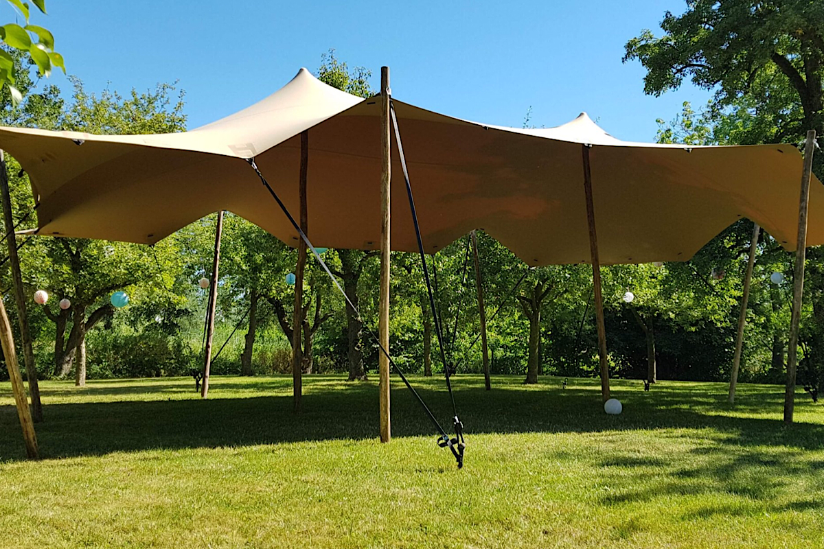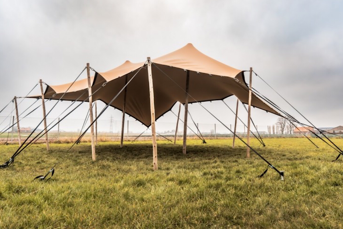 Optioneel: opgestelde stretch-tent 85m2